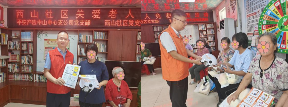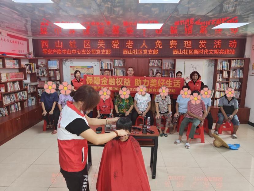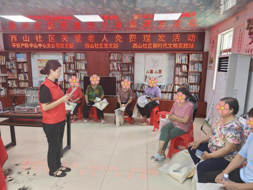 活动当天,恰逢西山社区举办关爱老人免费理发活动,现场热闹非凡。平安产险中山中心支公司志愿者以此为契机,开展“风险提示送上门”行动。平安志愿者穿梭在人群中,一边为排队理发的老人们送上贴心的问候,一边递上精心准备的金融知识宣传折页,通过通俗易懂的语言,向老人们讲解了常见的金融诈骗手段、如何识别非法金融活动以及如何保护个人财产安全和安全文明出行常识等实用知识。